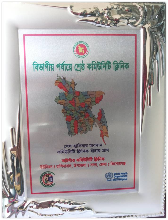২।কিশোরগঞ্জ সদর উপজেলার আওতাধীন রশিদাবাদ ইউনিয়নের ভাটগাও কমিউনিটি ক্লিনিকটি ২০১৪ ইং সনে বিভাগীয় পর্যায়ে ১ স্থান অর্জন করে এবং বর্তমান মাননীয় প্রধান মন্ত্রী জননেত্রী শেখ হাসিনা কর্তৃক ক্রেস্ট প্রদান করা হয়।